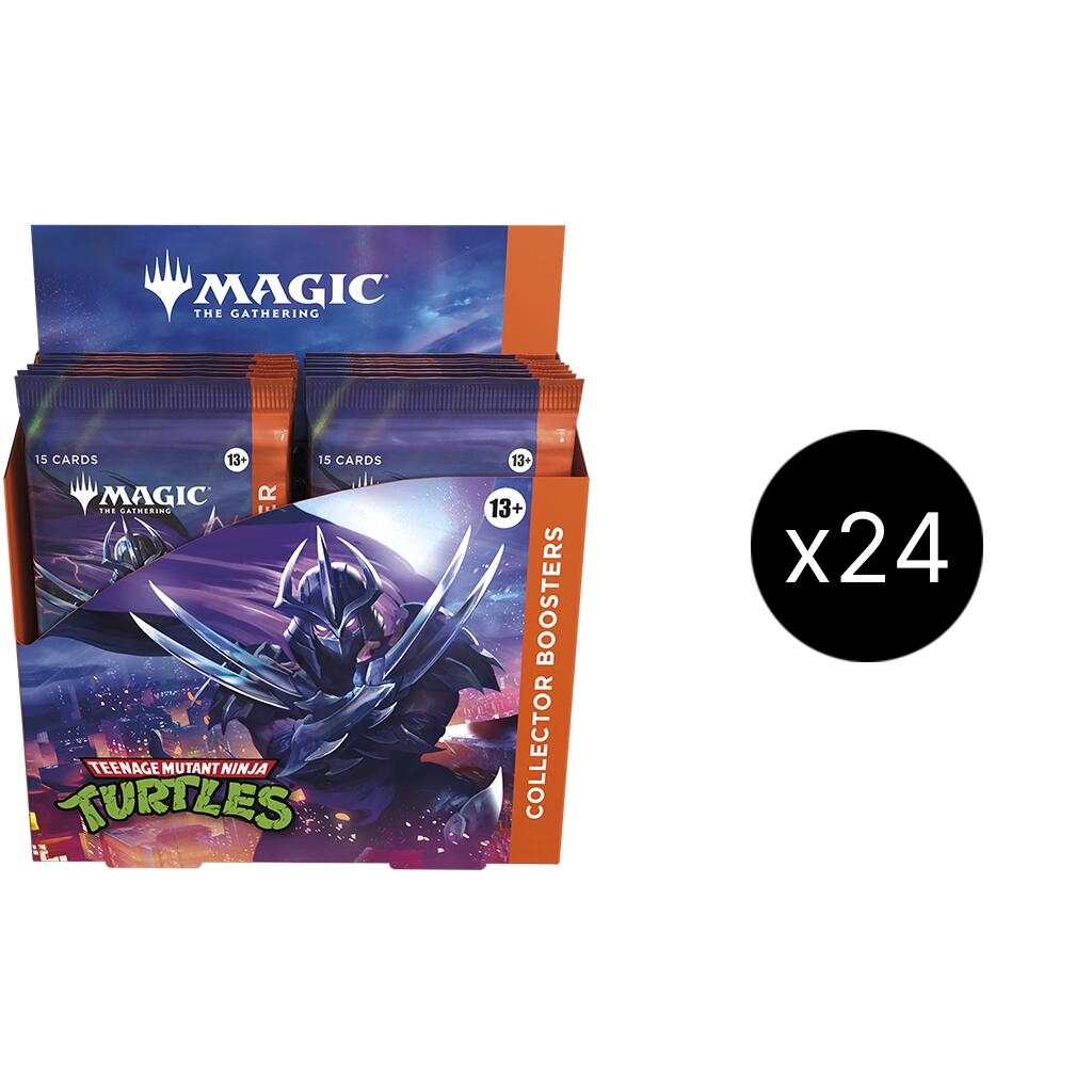 Keep your ninja weapons sharp enough to defeat the Foot Clan with these premium packs of mutagen-enhanced Magic! Inside each Collector Booster, you'll receive Turtle-powered rares and/or mythics rares, traditional foils, and a full-art land. You may even find borderless source material cards with nostalgia as thick as the cheese pull on a pizza slice. And last but certainly not least, there are the headliner cards—all four Turtles, illustrated by original co-creator Kevin Eastman! Collector Boosters are the ultimate way to add unique and exclusive cards to your collection. Tons of foils, special card treatments, and more await you inside every pack. ©2025 Viacom International Inc. TM & ©2025 Wizards. The Teenage Mutant Ninja Turtles - Collector Booster Display MasterCase contains: • 24 Magic: The Gathering® | Teenage Mutant Ninja Turtles Collector Booster Boxes; each Collector Booster Boxes contains: • 12 Magic: The Gathering® | Teenage Mutant Ninja Turtles Collector Booster Packs; each Collector Booster Pack contains: • 15 Magic: The Gathering cards • May contain these cards: TMT 1–190, 196–314; TMC 1–97; PZA 1–20 • 0–3 surge foil cards • 9–12 traditional foil cards • 5 cards of rarity rare or higher • 3–4 uncommon cards • 5–6 common cards • 1 land card • Borderless signature Kevin Eastman headliner card in <1% of boosters |